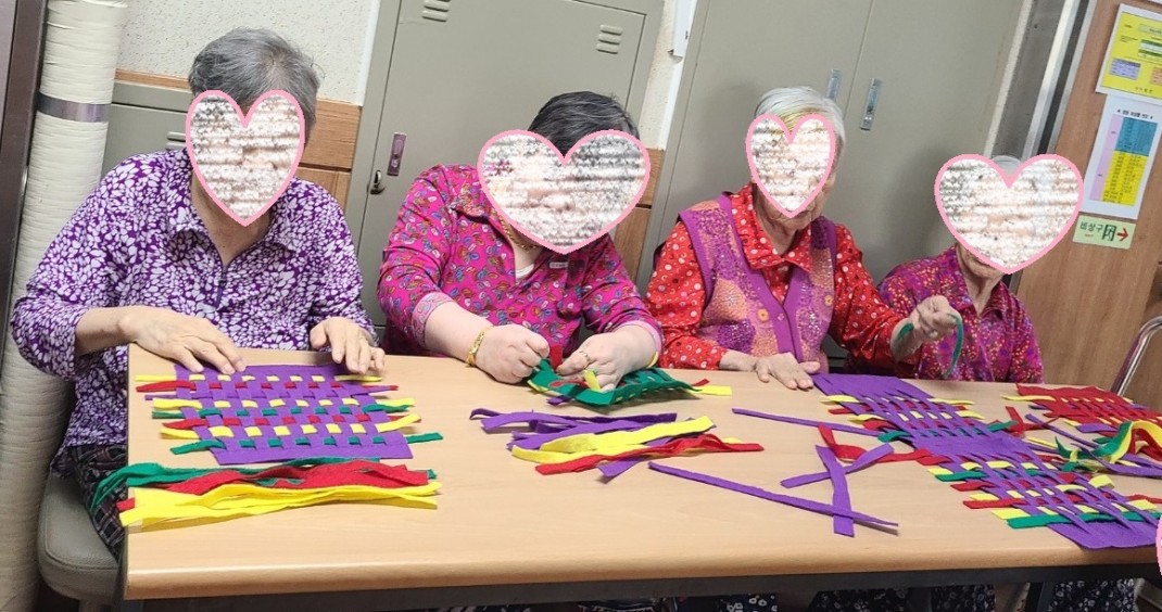 여가활동으로 소 근육 발달에 도움을 드리는 직물짜기 활동을 하며 활기찬 시간을 보내셨습니다.